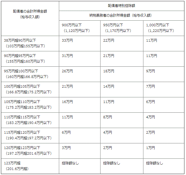 なお、合計所得金額が1,000万円を超える方は配偶者特別控除を受けることはできません。